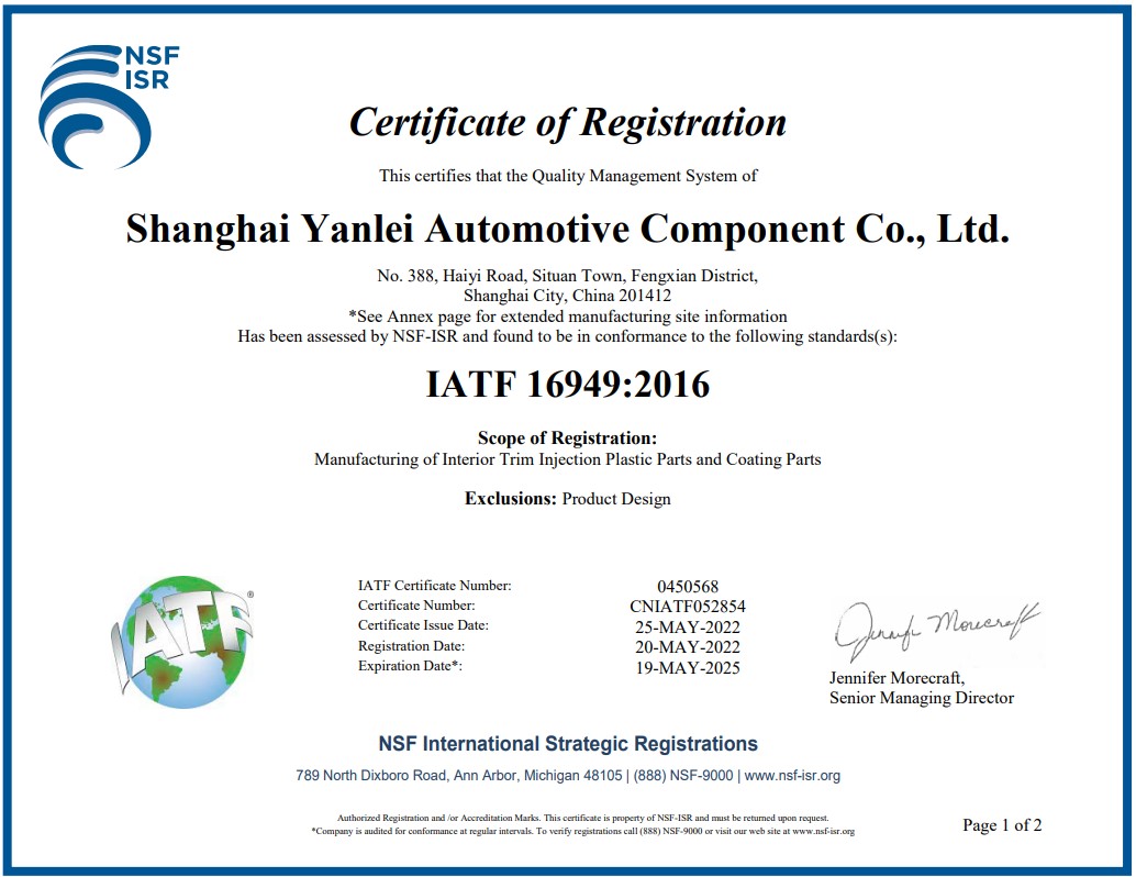 2019年5月份獲得了ITAF/TS 16949質量管理體系認證證書。